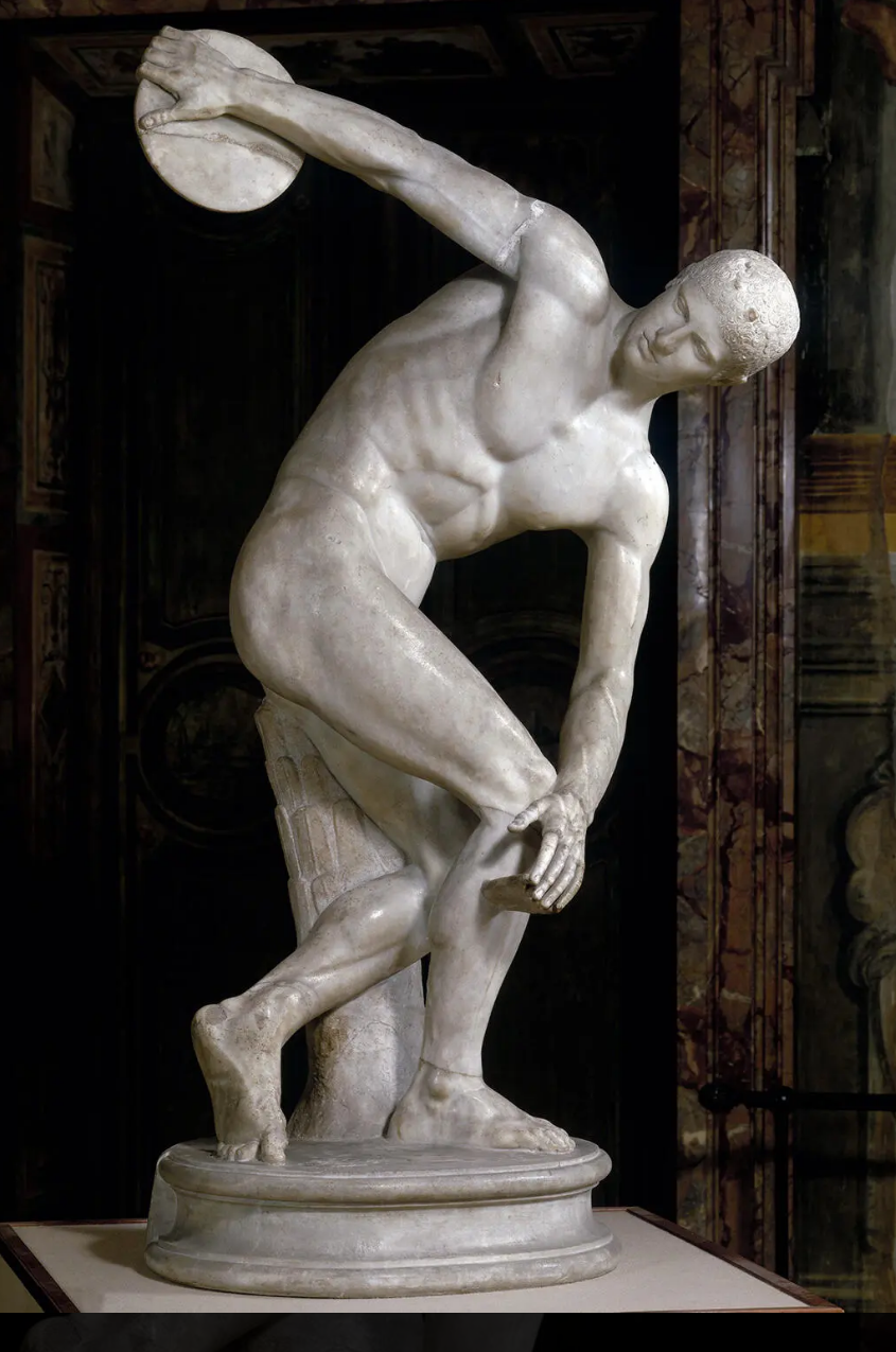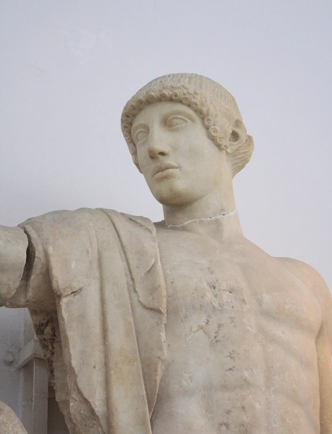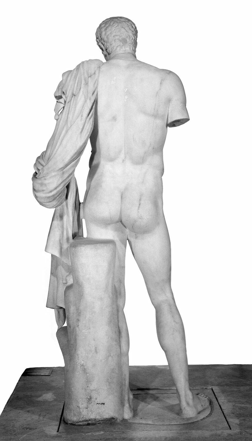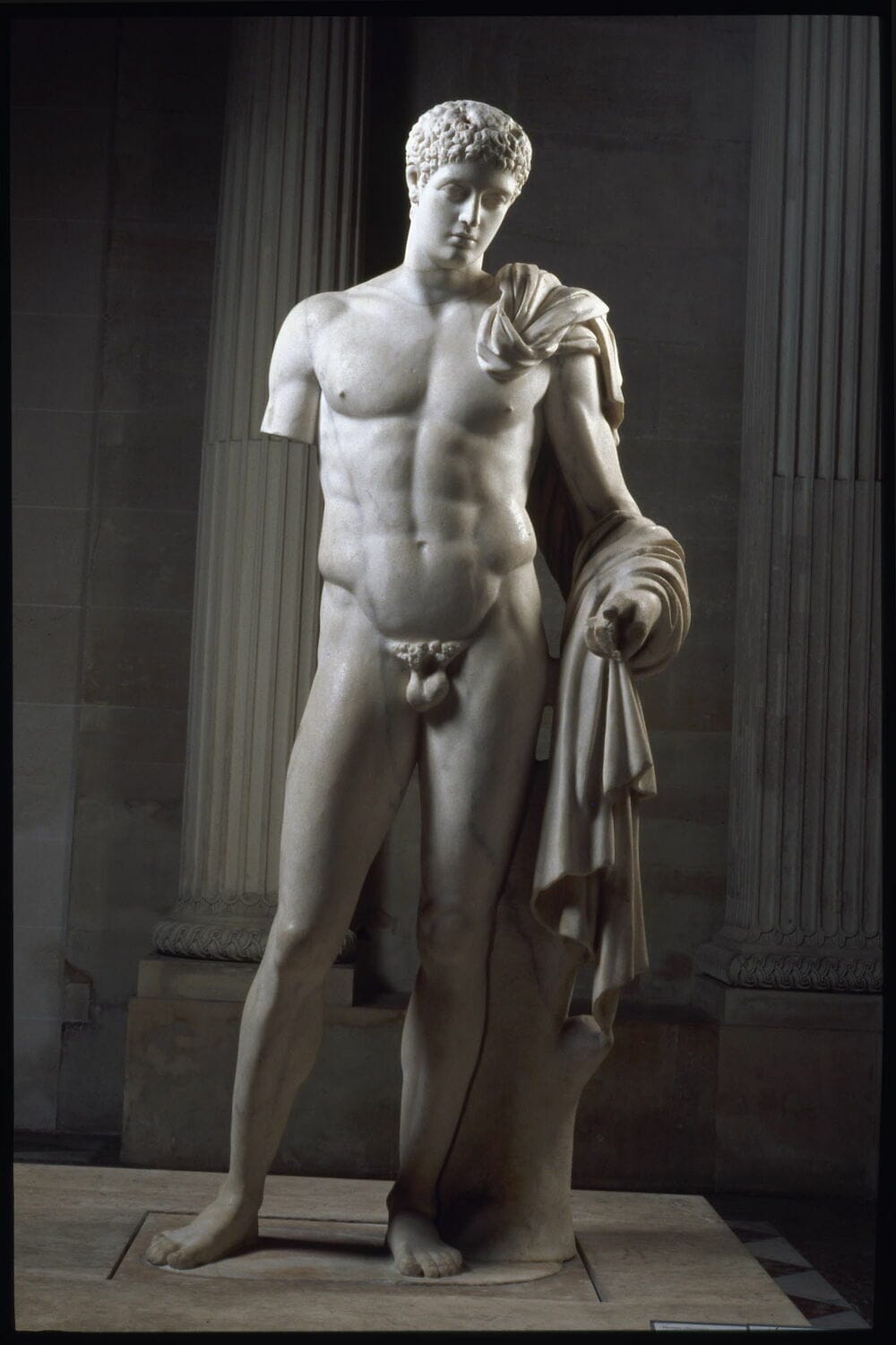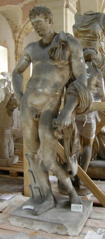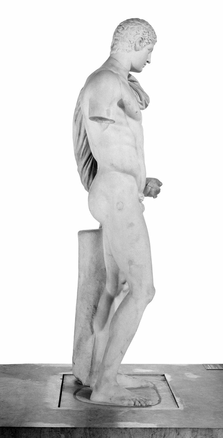 Tirage de l'Hermès du Belvédèrecopie romaine ; 1e moitié IVe s. av. J.-C. ; original conservé à (Vatican musées du Vatican) Dieu du cap Artémision, vers 460 av. J.-C. Selon la plupart des spécialistes, ce bronze représente Zeus, bien que l'hypothèse d'une représentation de Poséidon ait également été avancée. H. 209 cm, L. 210 cm. Une armature en fer, scellée au plomb, prolonge le pied : elle servait à fixer la statue sur un piédestal en pierre. Les sourcils et les lèvres sont incrustés de cuivre rouge. Musée archéologique national d'Athènes, Grèce.