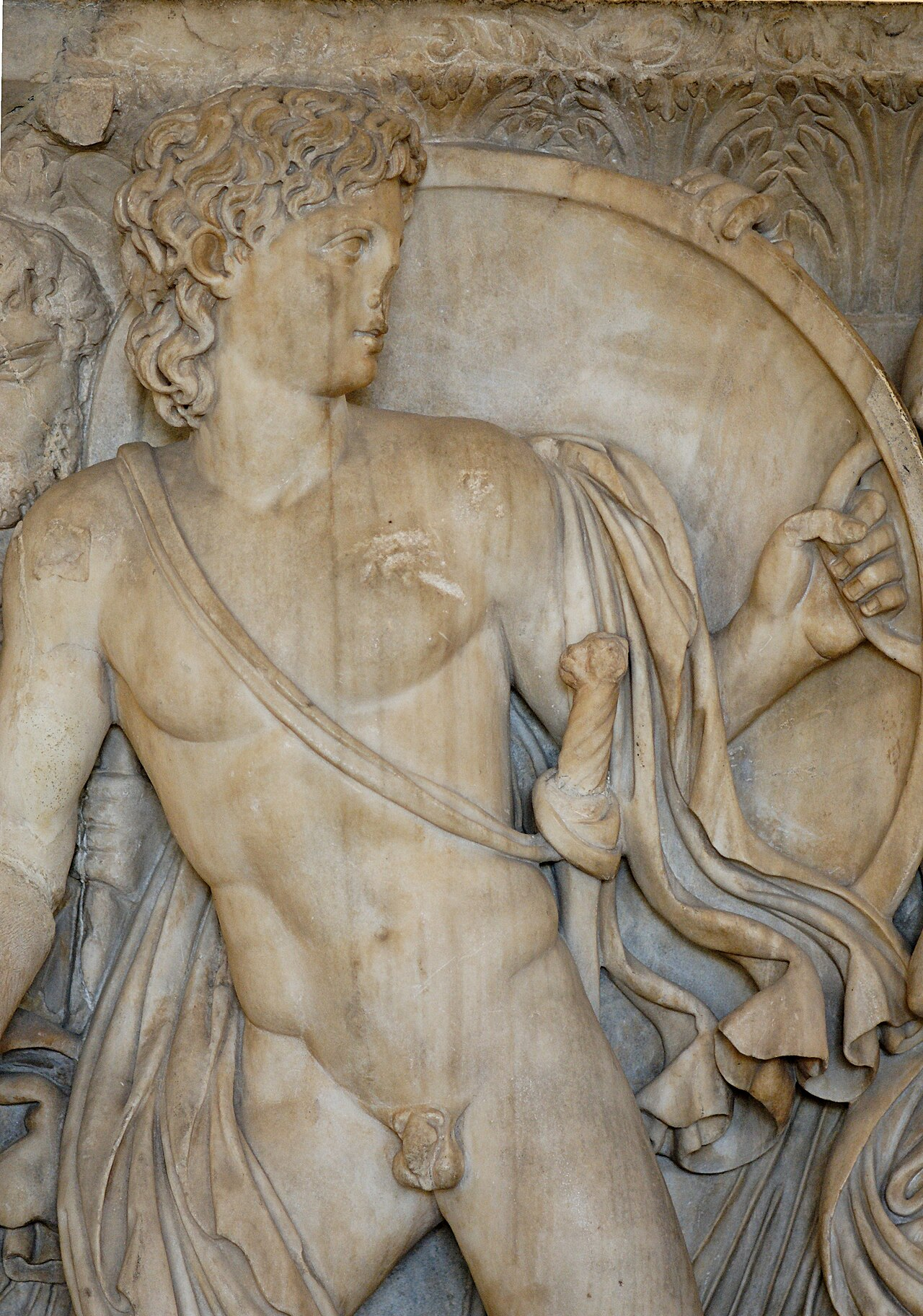 Achille et Penthésilée, Musée archéologique d'Aphrodisias. (vers 3è BC)Statue de Zeus brandissant le foudre. Glyptothèque de Munich. (eetrusque 5e siècle BC)Statue de Zeus brandissant le foudre. Glyptothèque de Munich.Reconstitution de la statue chryséléphantine de Zeus olympien. On distingue à sa droite, l'aigle qui est son symbole. Il tient à la main sa fille, Athéna. La statue originale mesurait environ 10 mètres de haut, et était faite d'ivoire et d'or. Elle était l'une des sept merveilles du monde.Italie, vers 150 ap. J.-C. Jupiter, roi des dieux romains, portant la foudre et accompagné d'un aigle. Marbre. Musée du Louvre-Lens, France.Poséidon ou Zeus ? 1er ou début du 2e quart du Ve siècle avant J.-C. EpidaureLe Zeus d'Ugento, réalisé par des artisans grecs dans un centre de culture hellénique, reproduit l'iconographie de la divinité suprême des Grecs mais était destiné à un sanctuaire indigène. (-500-520 BC)Trois terres cuites polychromes représentant des acrobates IV sec.Thétis donne à son fils Achille ses armes nouvellement forgées par Héphaïstos, détail d'une hydrie attique à figures noires, v. -575--550, musée du Louvre.Achille chez Lycomède, bas-relief d'un sarcophage athénien, v. 240, musée du Louvre.Combat d'Achille et de Penthésilée, cratère en cloche lucanien de la fin du Ve siècle av. J.-C., Musée national archéologique de Madrid.Achille pansant Patrocle, kylix d'Étrurie à figures rouges du peintre de Sôsias, v. Années 500 av. J.-C., Staatliche Museen de Berlin.Statue en bronze « Christ ou Þor » du Musée national d'Islande, Musée national d'Islande, Reykjavik. Statuette du dieu Thor (vers 1000 ap. J.-C.), en bronzeReproduction en bois d'une œuvre originale islandaise représentant Thor, dieu germanique de la guerre et du tonnerre, exposée au Musée de l'Armée suédoise (contemporaine, XXé siècle)Partie supérieure d'une pierre runique découverte à Sanda, sur l'île de Gotland en Suède, datant de l'époque viking et représentant probablement Odin, Thor et Freyr. L'inscription runique se lit : « Rodvisl and Farbjörn and Gunbjörn » (Musée historique de Suède/Historiska Museet, Stockholm).Islande : Thor avec son marteau, Mjöllnir ; ses gants, Järngreipr ; et sa ceinture, Megingjärdar. Encre sur papier, Jakob Sigurdsson (1727-1779), 1764. Institut Arni Magnusson, Reykjavik.Þórr et le géant Hymir pêchant Miðgardsormr. Cette scène est tirée de Gylfaginning dans l'Edda de Snorri. 1760, encre sur papier